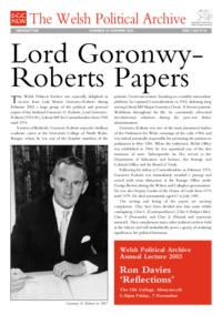 WPA Newsletter 34 (Winter 2003-2004) The Welsh Political Archive NEWSLETTER NUMBER 34: WINTER 2003–2004 ISSN 1365-9170 Ref lections The seventeenth annual lecture of the Welsh Political Archive…